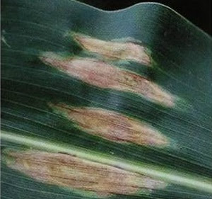 Hình 4: Vết bệnh điển hình trên lá ngô.