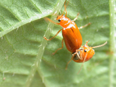 Sâu trưởng thành có cánh cứng màu vàng cam, hình bầu dục dài 6 - 7 mm, mắt đen, râu đầu dài. Sâu non dạng con sùng, màu trắng ngà, đầu màu nâu, chân ngực phát triển.
